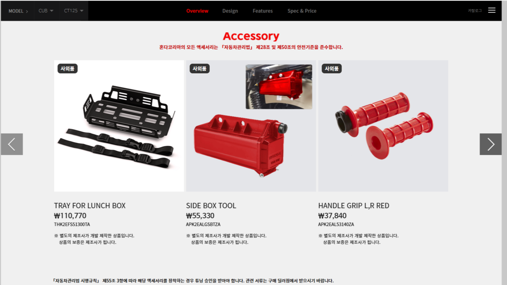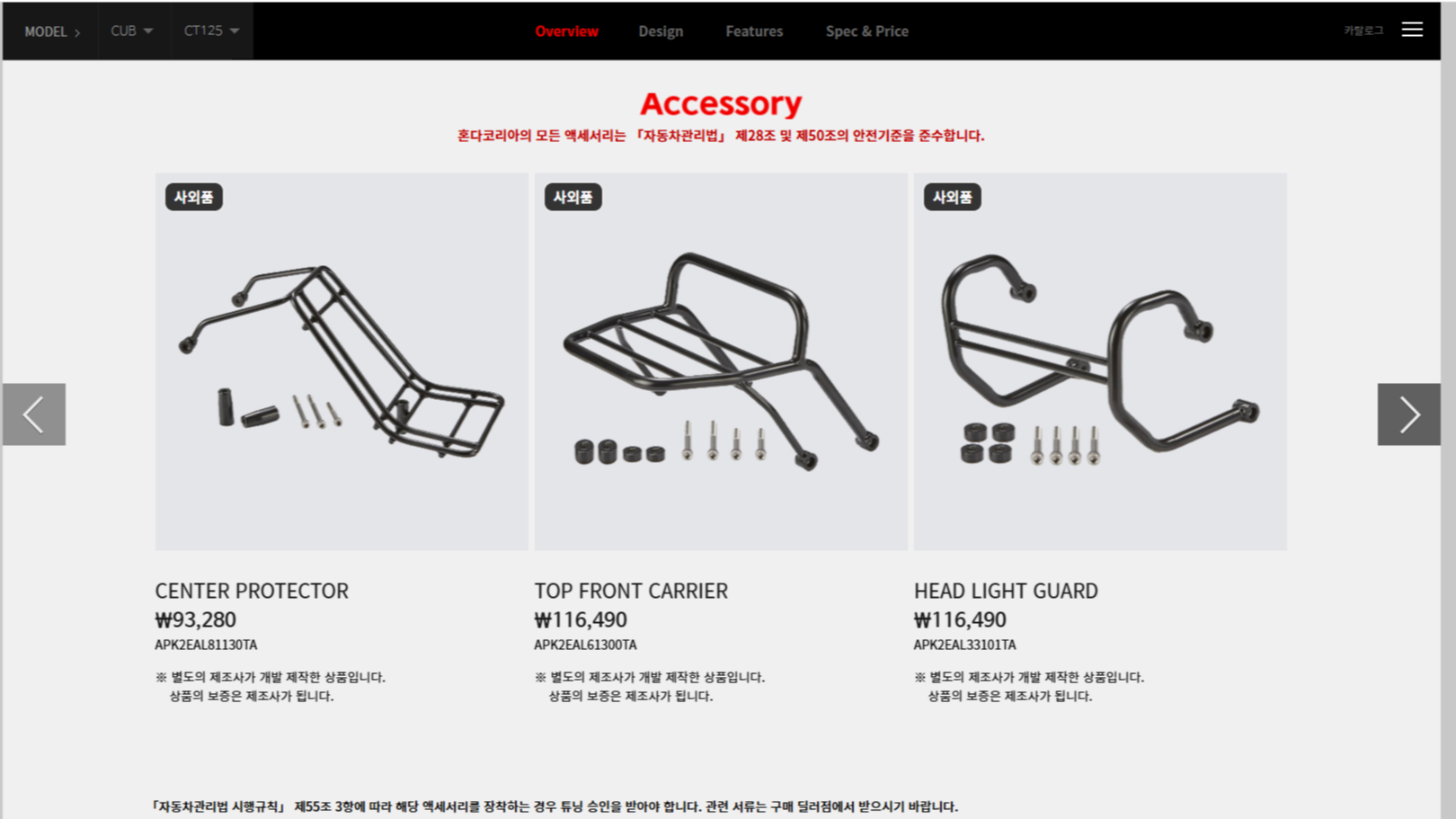 헌터커브 CT125는 본체 가격(4,890,000원)도 가볍지 않지만, 악세사리를 더하다 보면 본체 가격에 맞먹는 금액이 쉽게 나온다.